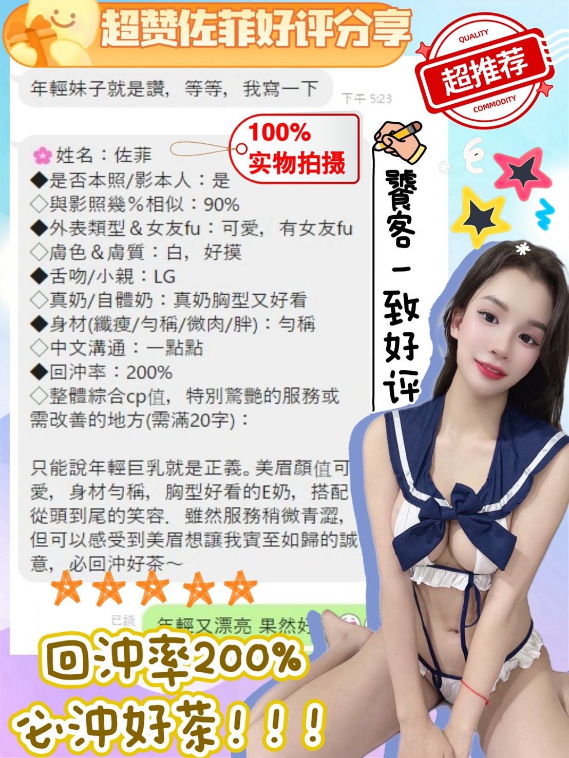 超雪白肉體,粉色雙頰甜美女孩兒    Review by 傅**