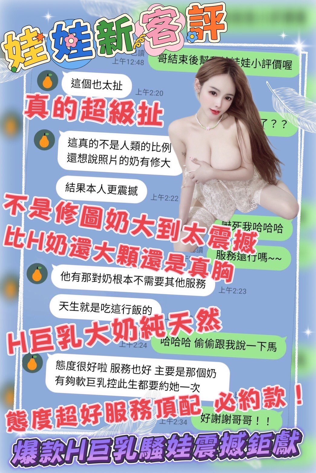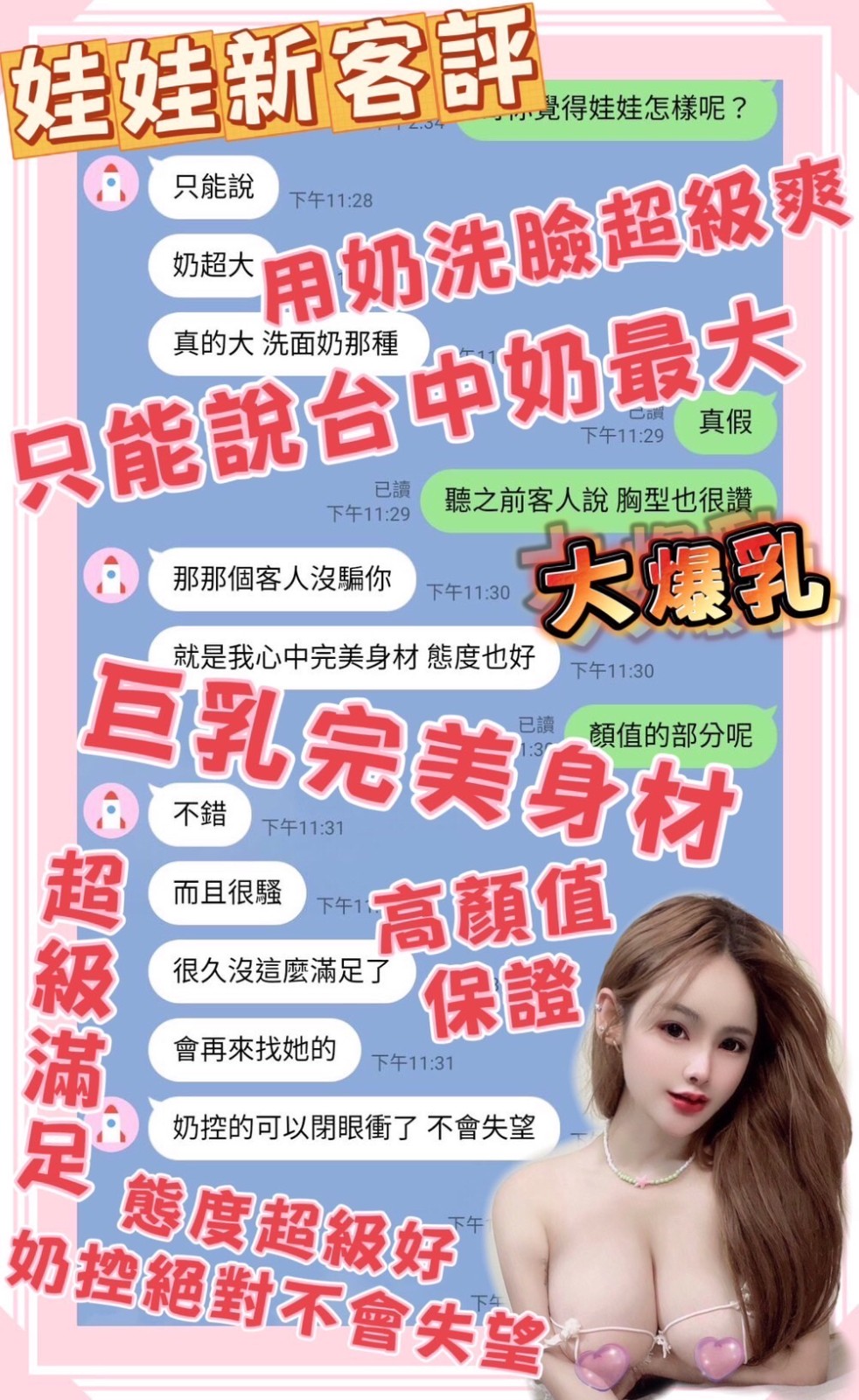 (snapping fingers)服務項目:調情共浴/愛撫調情/無套吹/舔蛋/深喉嚨/小親親/LG/屁推/臀推/69/品鮑/奶炮/胸推/自慰秀/全身紓壓/潮吹(依貴賓技術而定)/白人