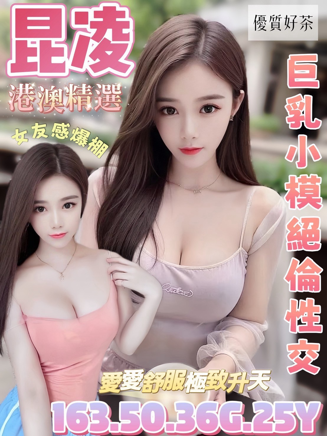 服務項目:無套吹/舌吻(視感覺口腔清潔)/小親親/浴中蕭/品鮑69/奶推/毒龍/親胸/簡易按摩/絲襪誘惑(客自備)…