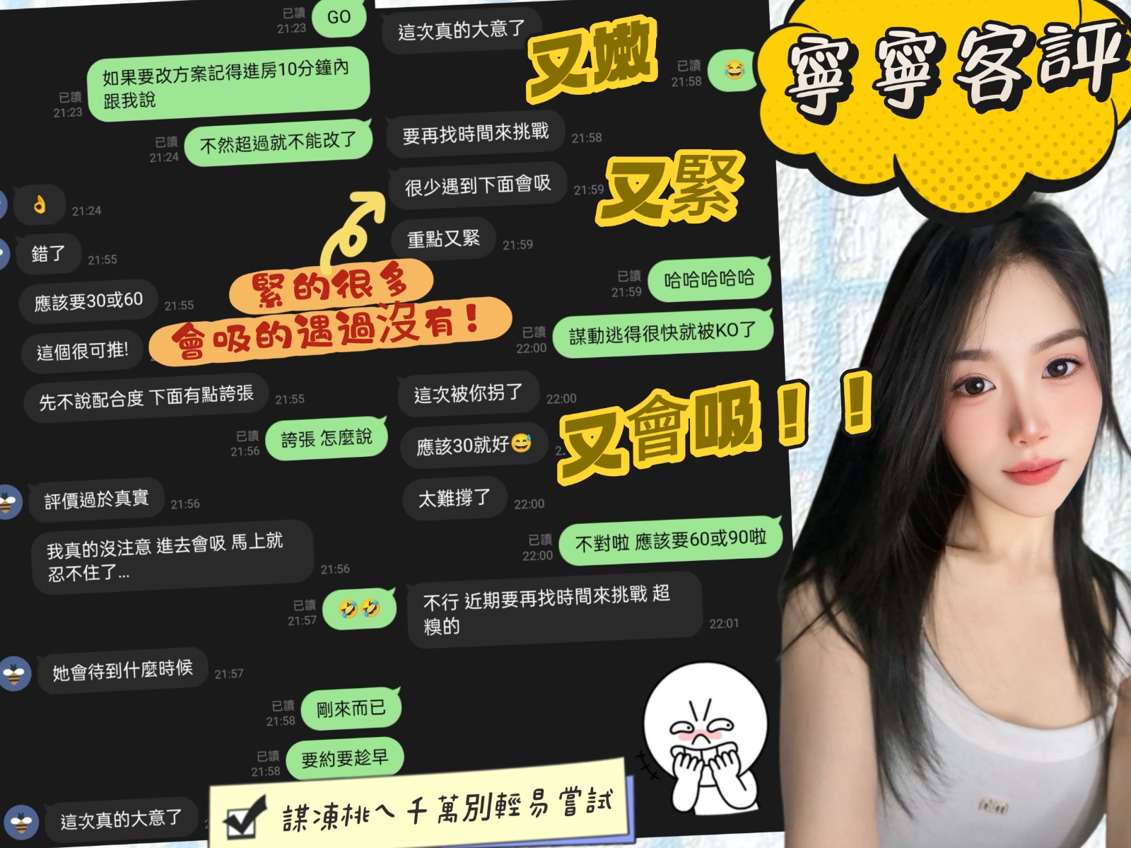 共浴 無套吹 小親親 69 奶炮 胸推 屁推 冰火 過水 漫遊 胸磨臉 穿絲襪愛愛(需自備) 可玩情趣用品(需新品) 口爆+500 顏射+500 無套+1000(可內射) 可30分 可2S 可兼90分(一天限量3班) 可2+1(買兩節50分鐘送20分鐘+1S) 可3+1