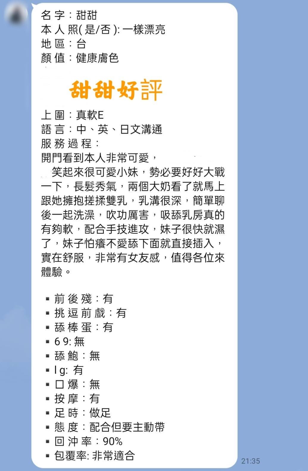 ♥新甜甜: 高顏值     迷人電眼    性感美女    天然粉色美乳   高挑修長美腿   晶瑩剔透白嫩肌膚   胸奴美腿控最愛   按功輕功一級棒   回客多   可獨龍   口爆+500,舌吻,69,無膜吹,殘廢澡,2S+500,品鮑,奶炮 膜做+1000    2+1(送30分)   3+1(送60分) 13:00~21:00♥可外約