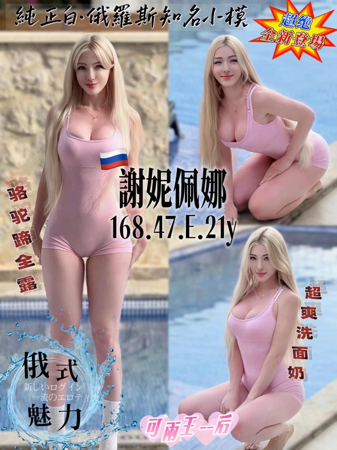 主打➡🇷🇺俄羅斯主打顏值擔當,超高人氣,堅挺飽滿雙峰,超會撒嬌,可甜可鹹,性感火辣無極限,難得的勻稱修長身材,素有西式淫水機之稱,還等嗎?再等就沒機會啦!